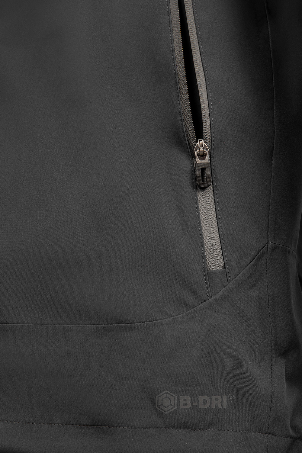 Right breast pocket with laminated water resistant zip
